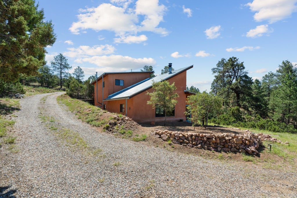 Welcome to your magical hideaway that directly borders the Santa Fe National Forest—just 15 minutes from the iconic Harry's Roadhouse, yet a world away from the bustle of everyday life. Nestled among towering ponderosa pines, this serene and secluded passive solar cabin offers the perfect balance of rustic charm and modern convenience. A well maintained trail system for hiking, mountain biking, and horseback riding begins only about 1,000 feet from the front door, putting adventure quite literally at your doorstep. Step inside to discover a warm and inviting interior with stained concrete floors and a sun drenched solarium stretching along one side of the home—ideal for morning coffee, yoga, or simply soaking up the peace of the forest. The heart of the home is a cozy country kitchen, complete with a classic wood burning stove, newer appliances including a gas range, a reverse osmosis system, and a water softener—everything you need for comfortable and self sufficient living. Up the charming spiral staircase you’ll find a private loft style bedroom with wood flooring and its own intimate deck—a perfect perch for stargazing or listening to the whisper of the pines. The home features multiple heat sources for year round comfort: a woodstove, two propane heaters (in the bathroom and bedroom), and two electric panel heaters (in the sunroom and bedroom). Stay connected while off the beaten path thanks to a professional Starlink internet system offering fast and reliable service for work or streaming. The property is served by its own private well with abundant, high quality water and includes a spacious storage shed—perfect for gear, tools, or creative projects. Whether you’re seeking a tranquil getaway, a remote work retreat, or a full time residence immersed in nature, this magical forest home offers unparalleled privacy, peace, and the soul soothing presence of the wild—just minutes from the vibrant culture of Santa Fe.
