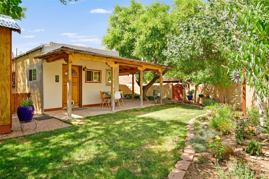 Superb location with colorful and serene gardens this house with guest house is approximately 5 blocks from the Santa Fe Farmer's Market. Main house offers 2 bedrooms with 1 full bath. Guest house is a 1 bed, 1 bath with its own laundry. Driveway has more than ample parking for both homes.