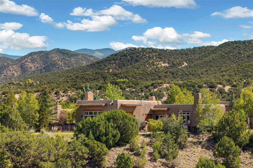 Rare single-level Bishop’s Lodge Villa located above the Bishop’s Lodge, Auberge Collection Resort. This free standing villa is uniquely located within the gated community perched on the edge of nature with sweeping Jemez Mountain Views and ultimate privacy from neighbors. Price includes a turn-key upgraded furniture package on this professional & locally managed investment opportunity with future bookings in place. A custom entry gate leads to the updated courtyards with coyote fencing, flagstone patios, lush landscaping, and a fire-pit ideal for entertaining & sunset views. Inside, a grand foyer opens to the living room that views the mountain vistas, a fireplace with flagstone hearth, gas logs and glass sliders all opening to an outdoor grilling/dining terrace. The generous kitchen offers updated quartzite countertops, KitchenAid SS appliances with gas range, bar seating and ample storage, opening to an expansive dining area filled with natural light. Three spacious ensuite bedrooms each feature access to outdoor patios, two with gas kiva fireplaces and updated quartzite counters in the baths. The primary includes a steam shower and jetted tub, fireplace and private courtyard. Traditional Santa Fe details throughout: high ceilings with Vigas, skylights, plaster walls, wood & tile flooring. Community amenities include a private pool plus access to the #1 Resort in the Mountain West by Condé Nast Traveler offering discounts for hotel rooms, dining, spa, horseback riding and limited access to the hotel pool. Just minutes north of downtown Santa Fe, this private and meticulously maintained Villa is move-in ready.