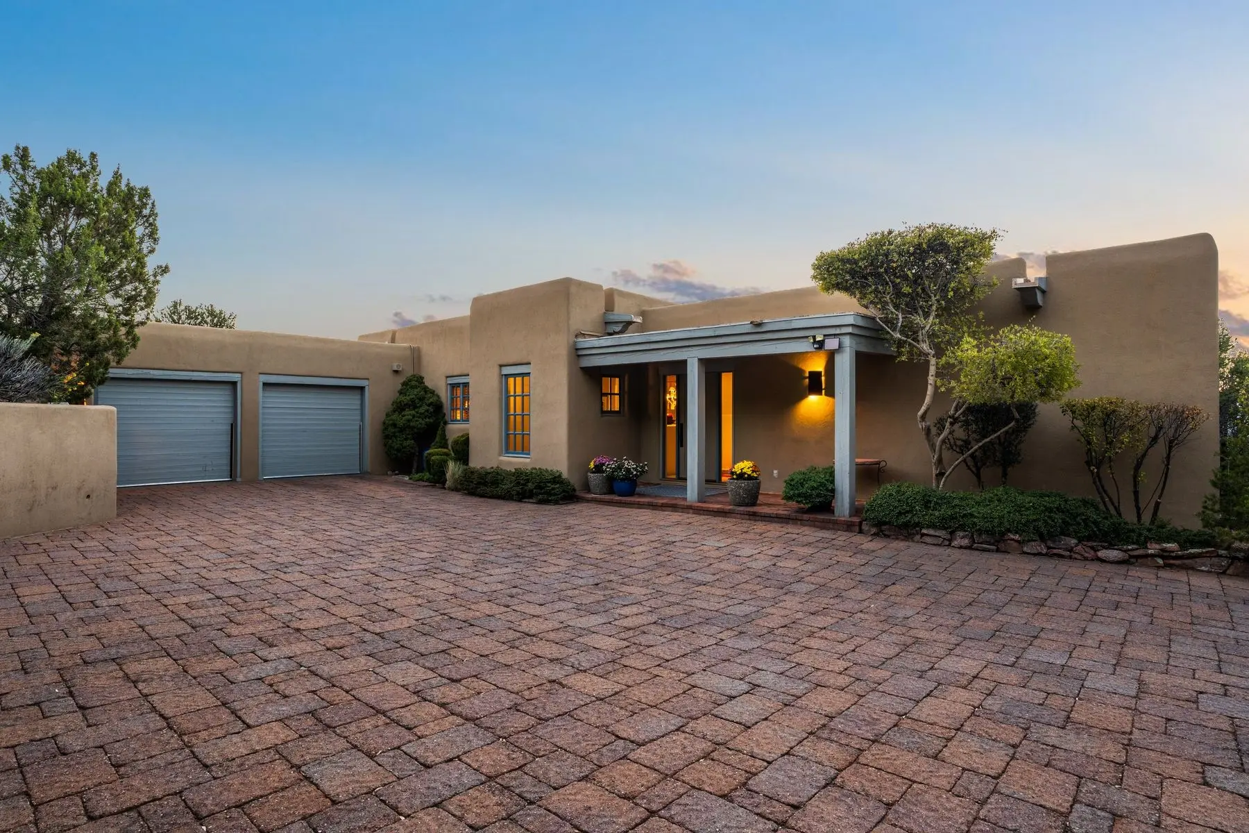 Nestled in a private gated neighborhood just five minutes from Canyon Road, this stunning 3-bedroom, 3-bath residence captures the essence of Santa Fe living with breathtaking views and refined details throughout. Arrive via a paver-lined driveway leading to a spacious two-car garage and be welcomed into a home built for both comfort and sophistication. Inside, French limestone imported from Forte dei Marmi flows seamlessly throughout, complemented by exquisite diamond finished plaster walls that add depth, texture, and timeless elegance. The expansive floor plan opens to over 800 square feet of covered portals, perfect for entertaining or savoring quiet evenings while soaking in the dramatic vistas. The gourmet kitchen is appointed with high-end finishes and appliances, designed to satisfy both everyday living and special occasions. Each bedroom offers privacy and comfort, complemented by spa-like baths. With its combination of architectural elegance, premium materials, and proximity to Santa Fe’s vibrant art and dining scene, this home offers a rare opportunity to enjoy luxury and convenience in one of the city’s most sought-after locations.