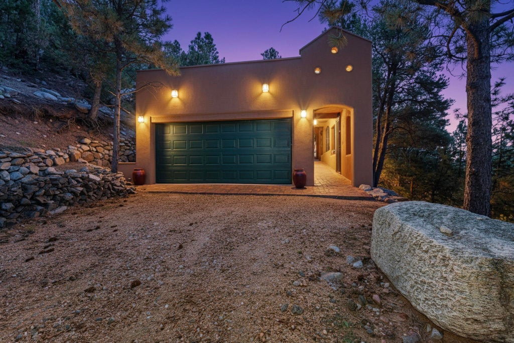 Welcome to 80 La Barbaria! This stunning 3 bedroom 3 bath home with a 1 bed, 1 bath casita is located in the beautiful foothills of Santa Fe just off historic Old Santa Fe Trail. This home boasts diamond plaster walls throughout, beamed ceilings, tiled floors, (NO CARPET), and the home offers 2 separate primary suites! The open concept dining room steps out onto a deck that overlooks the serene mountain setting. The casita has a full kitchen, bathroom, and private laundry, allowing your guests the perfect space for their visit to Santa Fe! If privacy and serenity is what you seek, look no further! Professional Photos coming soon!