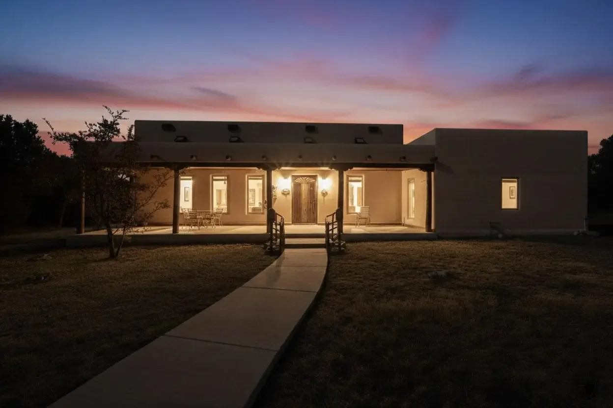 A front portal enhances the charm of the custom property featuring vigas, beams, and corbels. The layout is thoughtfully planned, allowing for a seamless flow between rooms while maintaining a sense of intimacy. Natural light floods the interiors, highlighting the exquisite finishes and enhancing the warm ambiance. This home is not merely a structure; it is a testament to the dedication and passion that built this creation. Features & details in this home include windows trimmed in wood, tailored plant ledges provide a perfect space for displaying those special heirlooms, striking wooden wheels serve as chandeliers and offer a unique focal point in the living area. Accommodating family and guests, the residence boasts three well-appointed bedrooms and 3.5 bathrooms. The timeless clawfoot bathtub serves as a focal point and embodies a sense of luxury and comfort that transforms an ordinary bathing routine into a serene escape from the stresses of daily life. Additionally, a built-in display cabinet with glass doors provides showcase for cherished items, further enhancing the home's sophisticated design. Constructed with straw bale materials, the home boasts exceptional energy efficiency, superior insulation, and impressive fire resistance, ensuring comfort and safety year-round. Additionally, the property includes a substantial 1,258+/- sq ft attached workshop that offers versatile possibilities. This space can serve multiple purposes, a mother-in-law suite, a dedicated hobby room, car enthusiasts' garage and the possibilities are endless. Notably, this workshop is not included in the home's heated square footage, providing an extra dimension of utility and flexibility to the property. Tucked into the Manzano Mountains the SW natural landscape is adorned with trees and wildflowers, attracting a variety of wildlife, including deer and turkeys. Immerse yourself in the peacefulness of this property.